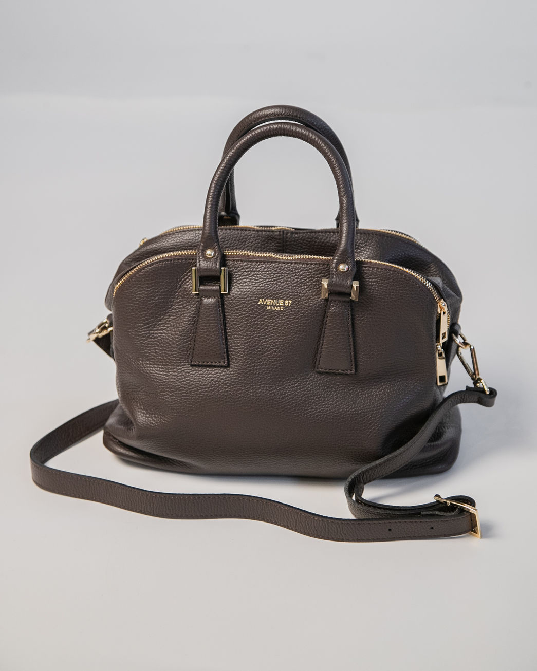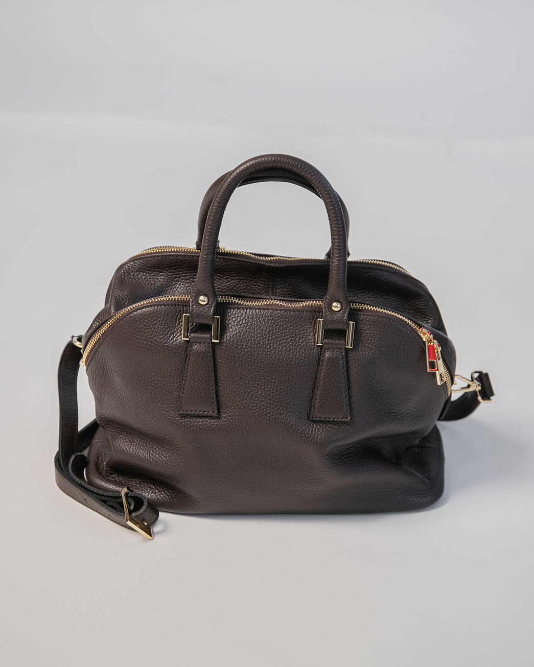 Borsa morbida media in pelle martellata colore testa di moro con doppio manico .